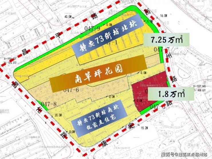 北地块东至西苏州路、南至南草坪小区、西至昌化路、北至昌平路,用地面积16019.4平方米,建筑面积113448.3平方米,容积率4.52,绿化率35%。