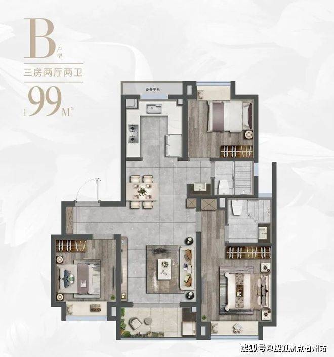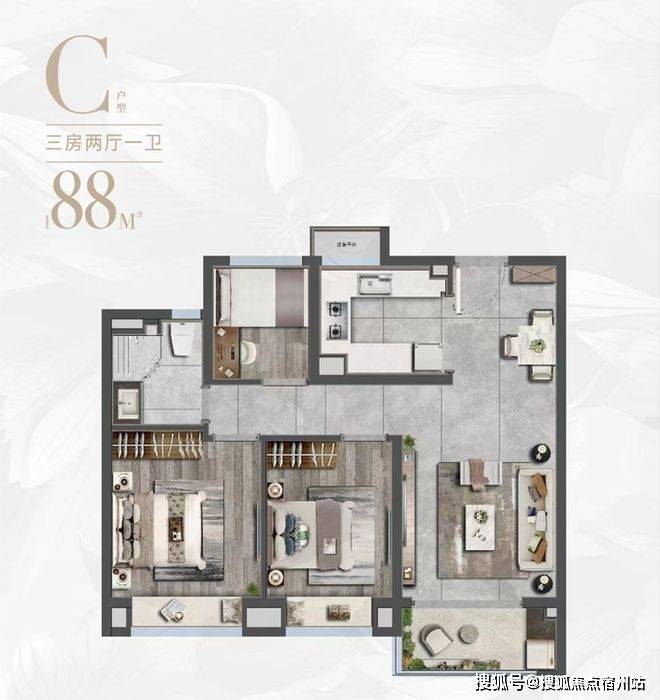 建筑面积约88㎡三房,一步到位满足年轻小家庭及未来需求,绝对是超高性价比的“大虹桥生活入场券”。
