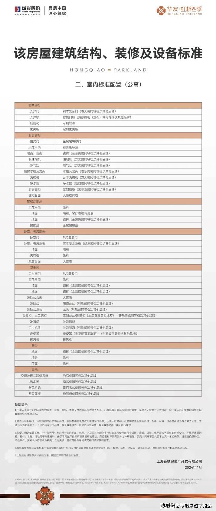 更有霍尼韦尔(或同等档次品牌) 的新风、方太(或同等档次品牌) 的油烟机和洗碗机、科勒(或同等档次品牌) 的龙头和台盆、百年约克、圣象、施耐德等✅✅ 华发虹桥四季售楼处电话:400-9975-759✅✅或同等档次品牌) 其他品牌国际一线品牌为生活保驾护航。
