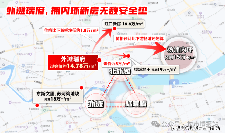 外滩瑞府离外滩更近,绿城地王位于北外滩,两者直线距离不过约1公里,但新房差价或4-5万/㎡。您认为品质差不多的情况下,未来差价有这么大?