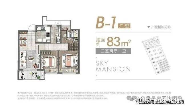 除了建面约89㎡的洋房, 建面约83~89㎡高层户型也各有所长,均是三房设计,无论是从结构布局,还是空间利用皆相得益彰,承载一家人的美好生活。 高层户型如下: