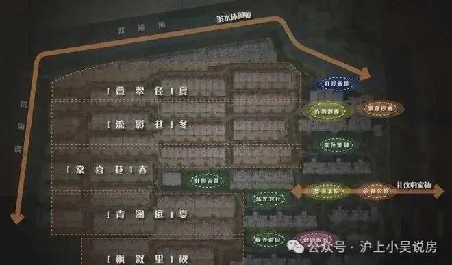 五大主题街巷通过植物配置营造出四季变换的景观,选用紫薇,红梅,玉兰,红枫,鸡爪槭等。