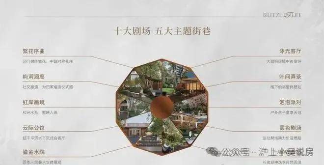 十大剧场有虹岸画境、屿间洄廊、虹岸画境,云际公馆、鎏金水院等一众景观,更有泡泡派对、霁色剧场、叶间弄茶、沐光客厅等休闲空间。