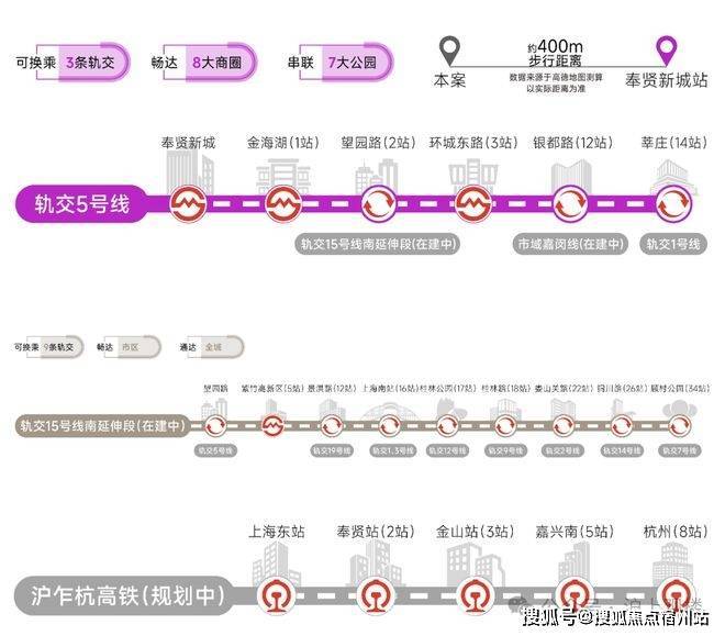 交通方面:项目多轨交环绕,5号线、15号线南延伸段(在建中)、市域嘉闵线南延伸段(规划中)、沪乍杭高铁(规划中)及南枫线(在建中)