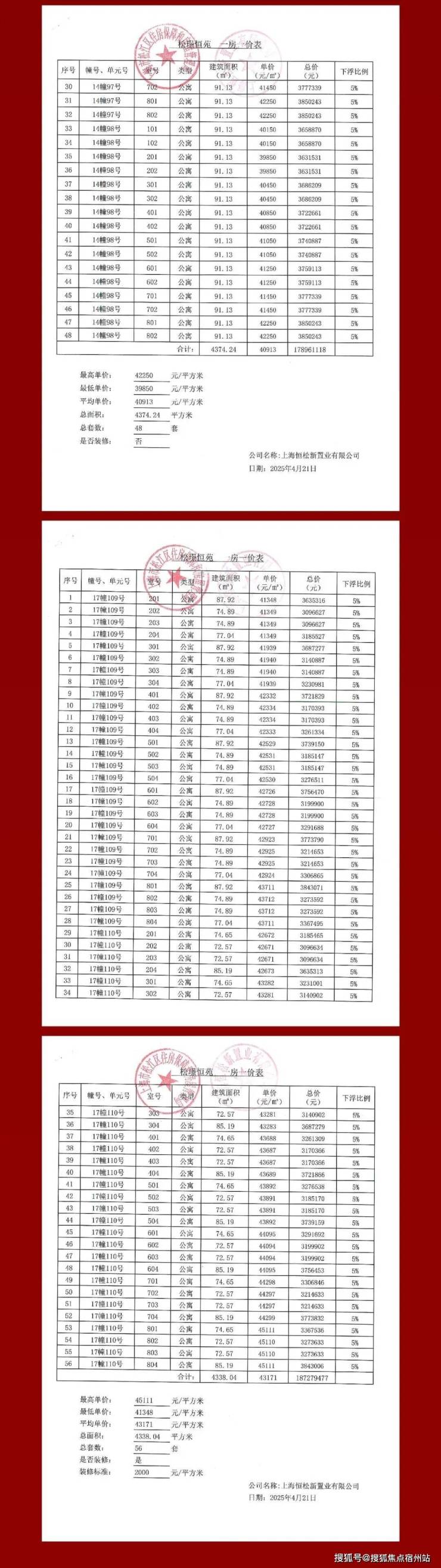 一房一价表: