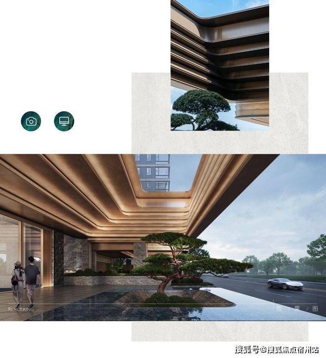 南大门以现代宋式美学为笔,库班灰石材镌凹槽光影,两侧沉稳如砚,温润玉石屏风透光藏景,轻钢飞檐承宋韵,悬挑一抹空灵。前庭孤树与奇石对望,转身水景铺陈,享影横波,归家动线于隐奢中完成由“雅境”至“松弛”的东方转场。上海 绿城·逸庐