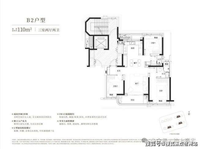先说这个建面约110㎡三房, 真是“麻雀虽小五脏俱全”的教科书级示范!你知道现在市面上多少三房是"假三房"吗?次卧小得只能放张婴儿床,书房连转个身都费劲。但这里不一样,每个房间都是“真·能住人”的配置! 实现从“住得下”到“住得自由”的维度跨越