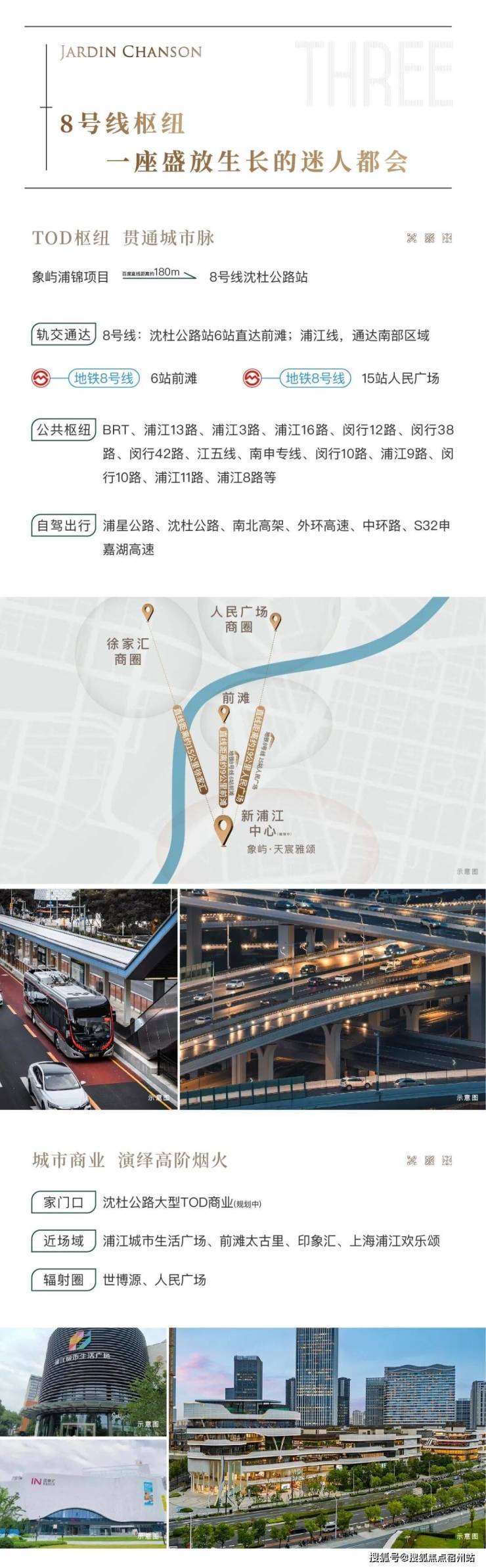 项目距8号线沈杜公路站仅200米(直线距离),作为市中心唯三经过人民广场的轨交线,8号线直接串联前滩、徐汇滨江、陆家嘴三大黄金三角,形成“一站换乘、多核联动”的超级交通网络。