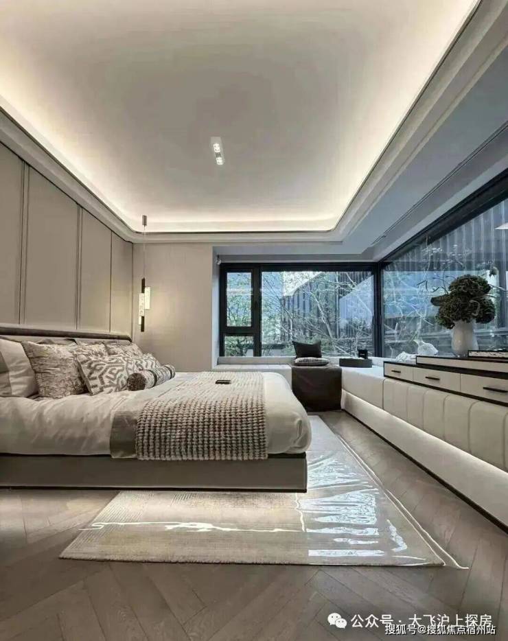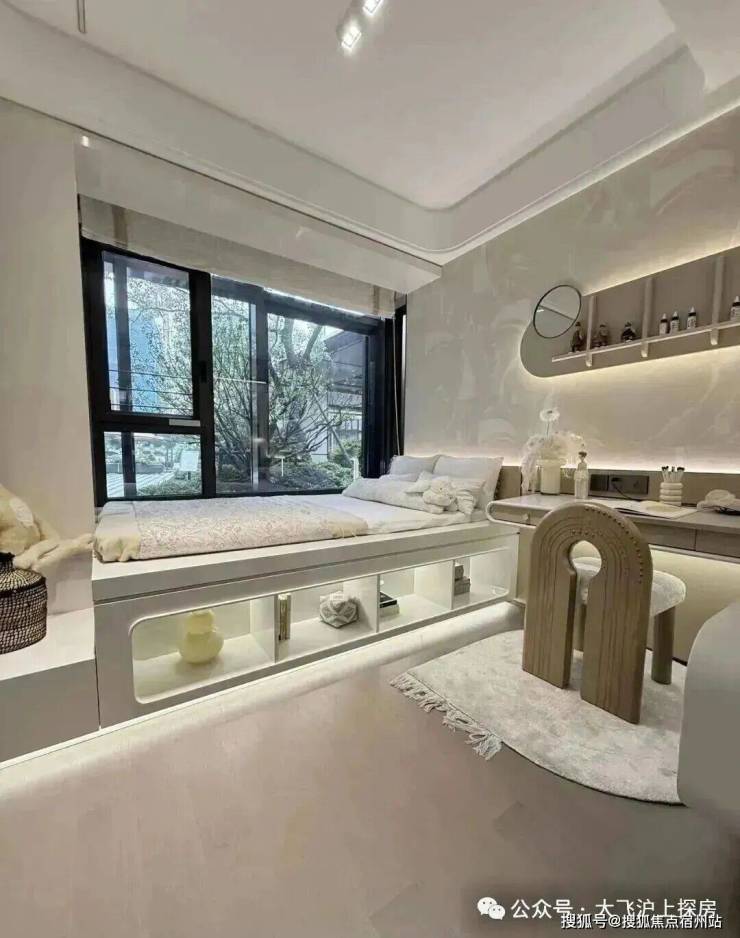 尤其是主卧大套房安排上独立衣帽间+独卫,配上270度的转角飘窗,一扇窗就是一幅流动的四季自然画。