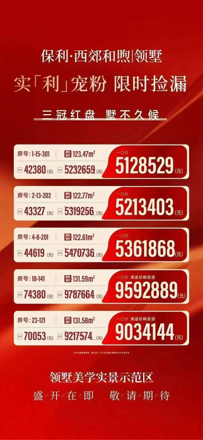 最新消息,保利西郊和煦 火爆认购中!均价约69999元/平方!主推建面约96-165平高层/联排别墅!内附完整一房一