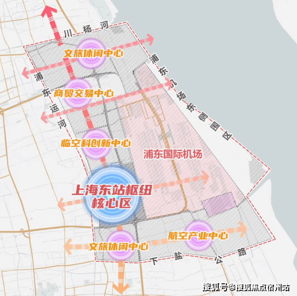 东方枢纽的建设也已经把川沙东部新城区纳入了开发范围。根据十四五规划,东方枢纽由浦东国际机场和铁路上海东站组成,为川杨河、浦东国际机场东侧围区、下盐公路、浦东运河围合的区域,总投资1500亿元,规划面积达155平方公里,我们项目正在其范围中。