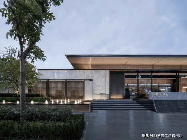 大面通透玻璃外衬定制龙鳞纹金属网的双层结构,将国画中框景的手法运用独到,在达到朦胧美的同时,为归家创造一定的私密性和独特的东方礼序感。