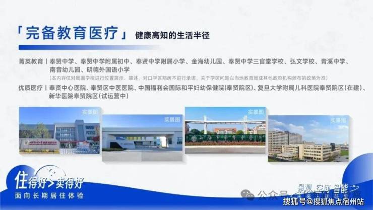 优质医疗:奉贤中心医院、复旦大学附属儿科医院奉贤院区(在建)、奉贤区中医医院、中国福利会国际和平妇幼保健院(奉贤院区)、新华医院奉贤院区(试运营中)