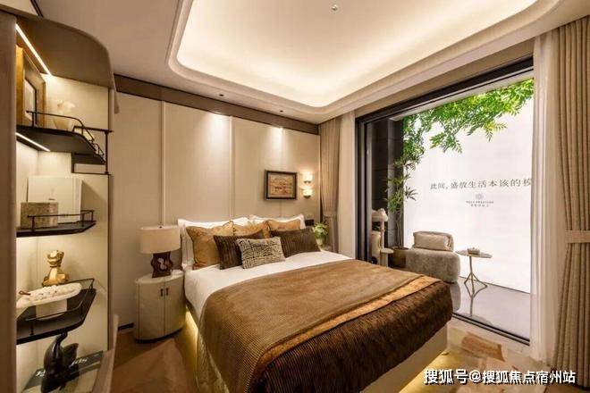 吊顶与墙面的木饰面特意采用圆弧过渡处理,没有棱角的生硬感;✅✅保利誉滨江售楼处电话:400 - 8824 - 258✅✅墙面大面积铺设皮质软包,触感更温润;卧室地板选用工艺复杂的鱼骨拼,只为更好看...