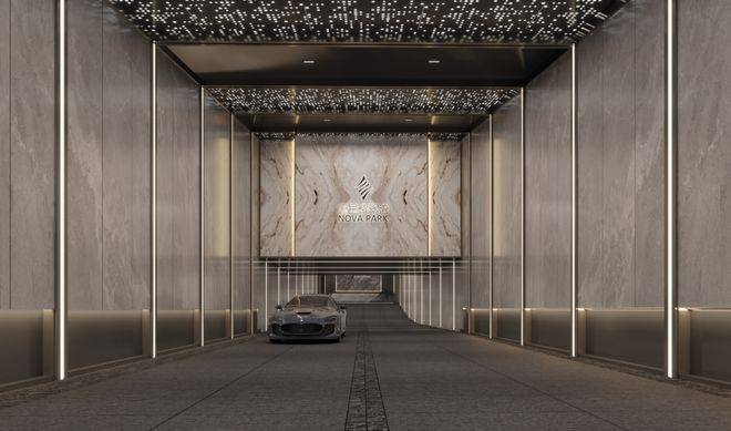 约50米宽现代精奢门厅界面,尊崇不彰自显。
