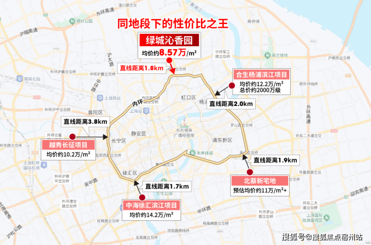 首先,项目距离内环直线约1.8km,而全市同样地段维度的新房,每一个都是千万以上的豪宅。