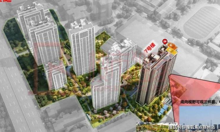 7号楼,位于整个小区的南面头排位置,前排无遮挡,拥有王炸级的城市景观资源: