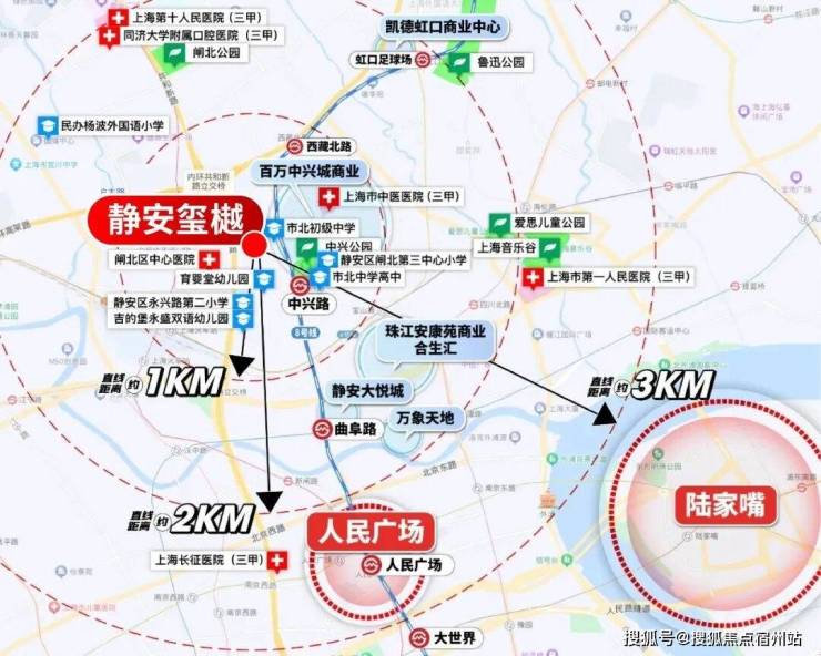 商业方面,项目1公里范围内有静安大悦城、万象天地、凯德虹口商业中心、百万中兴城商业(在建中)、珠江安康苑的商业合生汇(在建中)等大型商场。