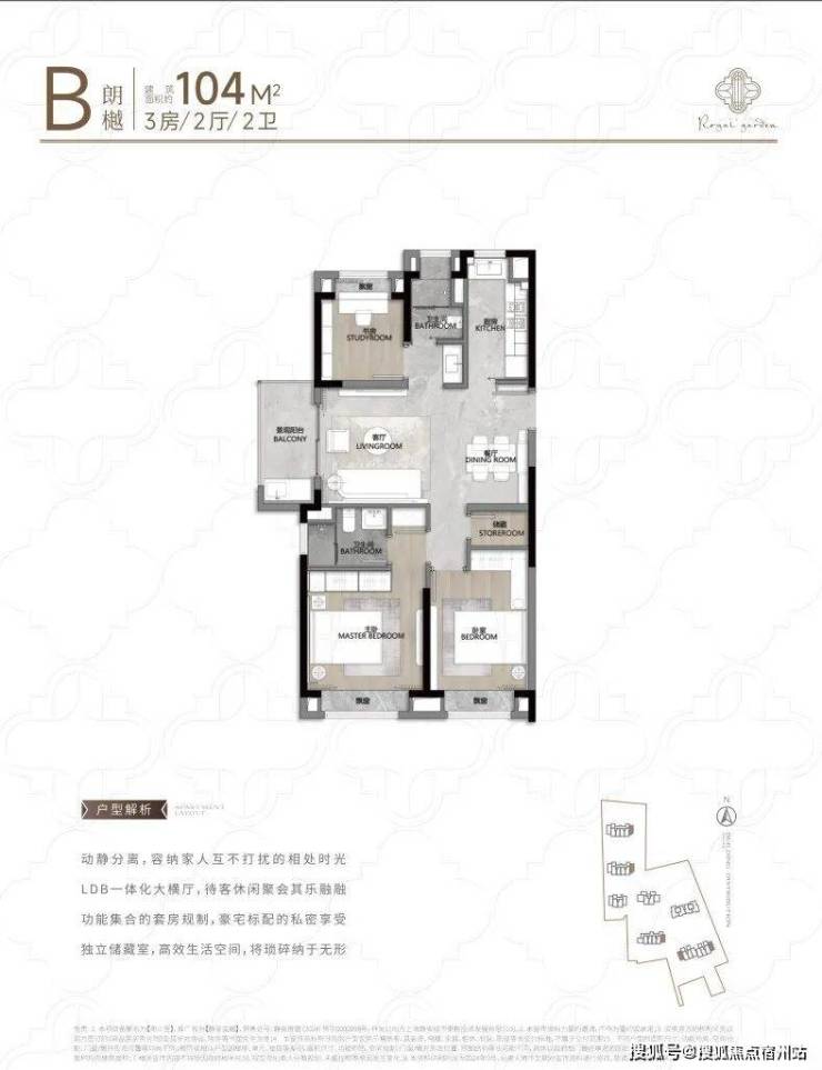 再看建面约104㎡B户型: