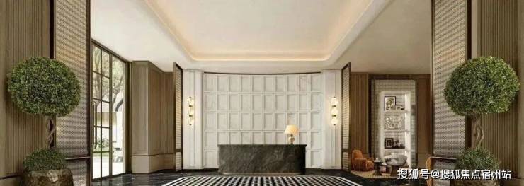 社区主入口更是兼具 豪华酒店海派元素 设计风格,挑高约 6 米的入户大堂、水系景观与艺术家共创作品交相辉映,奢华感和高级感拉满!