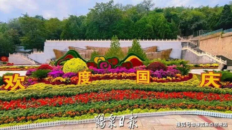 公园北门广场上,长20米、宽15米的大型立体花坛“亮相”,为即将到来的国庆节增添了喜庆氛围。花坛搭配青山、祥云等立体绿雕和“欢度国庆”字样,将自然意趣与节日庄重感巧妙融合。花坛周边精心搭配了三角梅、散尾葵、非洲茉莉、一品红、变叶木、国庆菊、一串红、孔雀草、佛甲草等植物。园艺师通过高低错落的层次排布、疏密有致的空间搭配,让红、黄、粉、绿等色彩交织碰撞,营造出热烈绚烂的视觉效果。