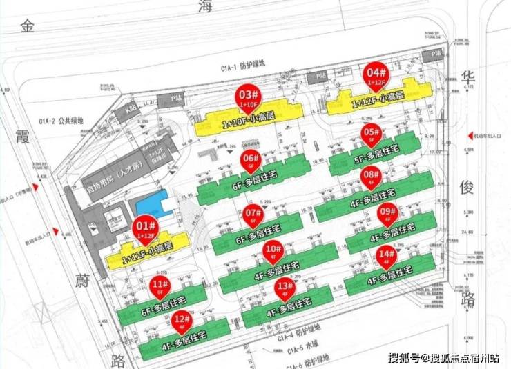 项目整体规划精心打造了 14 幢住宅楼,涵盖了 10 幢 4 - 6 层的多层商品住宅 、3 幢 10 - 12 层的小高层商品住宅,以及 1 幢 12 层的自持用房与保障房(位于项目西北角)。