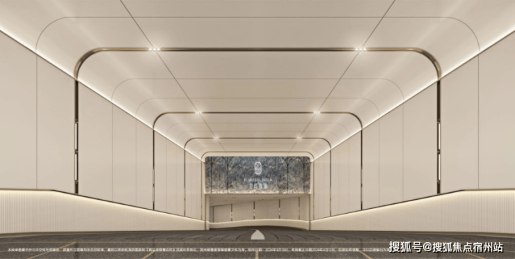 招商臻境,车行入口同样花了极大的心思进行雕琢。相比较市场普通的墙面漆,整个入库车道采用了难得一见的全铝板吊顶与通铺,配合追光式的灯带设计,车辆缓缓驶入,铝板的高级质感与柔和追光的仪式感一点点打开。