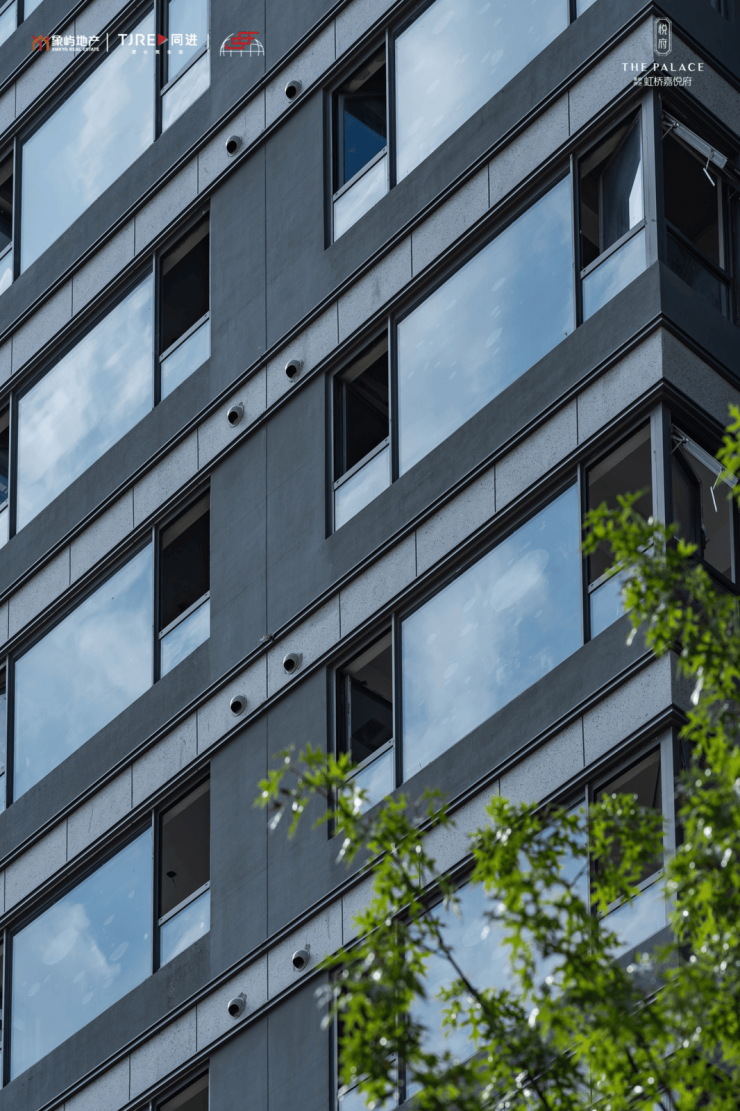 建筑方面,虹桥嘉悦府汲取高级灰经典美学灵感,以珍珠蓝石材、多彩仿石漆、深灰色铝板搭配宽幕玻璃,整体呈现玻璃流幕现代立面,经典永不过时。