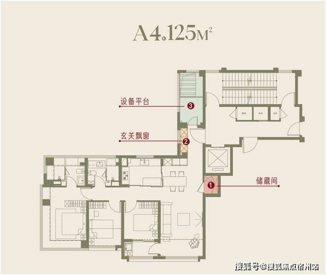 南向面宽达13.4m,四开间朝南,全卧超南。实得率超95%,多了20平空间,三阳台,满飘窗,设备平台,主卧室270°套间设计。层高3.15米。这个户型对比样板房,储藏间更大了,玄关收纳空间更大,收纳空间更多