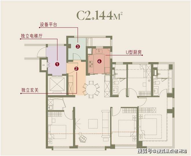 144边套户型:7.4平全明独立电梯厅,实得率超98%,超200m楼间距,视野无遮挡。
