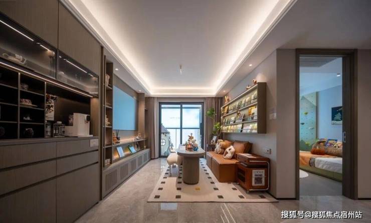 经典的餐厨客厅一体的大客厅,是典型的“非传统去客厅化”设计,它既能会客,但更多是作为“家庭厅”使用,可作为亲子游戏、娱乐健身等空间。