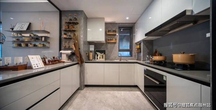 厨房方面,古洛尼的油烟机、燃气灶、洗碗机,弗兰卡水槽,松下凉霸,威乃达烤漆橱柜收纳,公牛可移动插座,中企云启春申都有考虑到并且一并配齐。