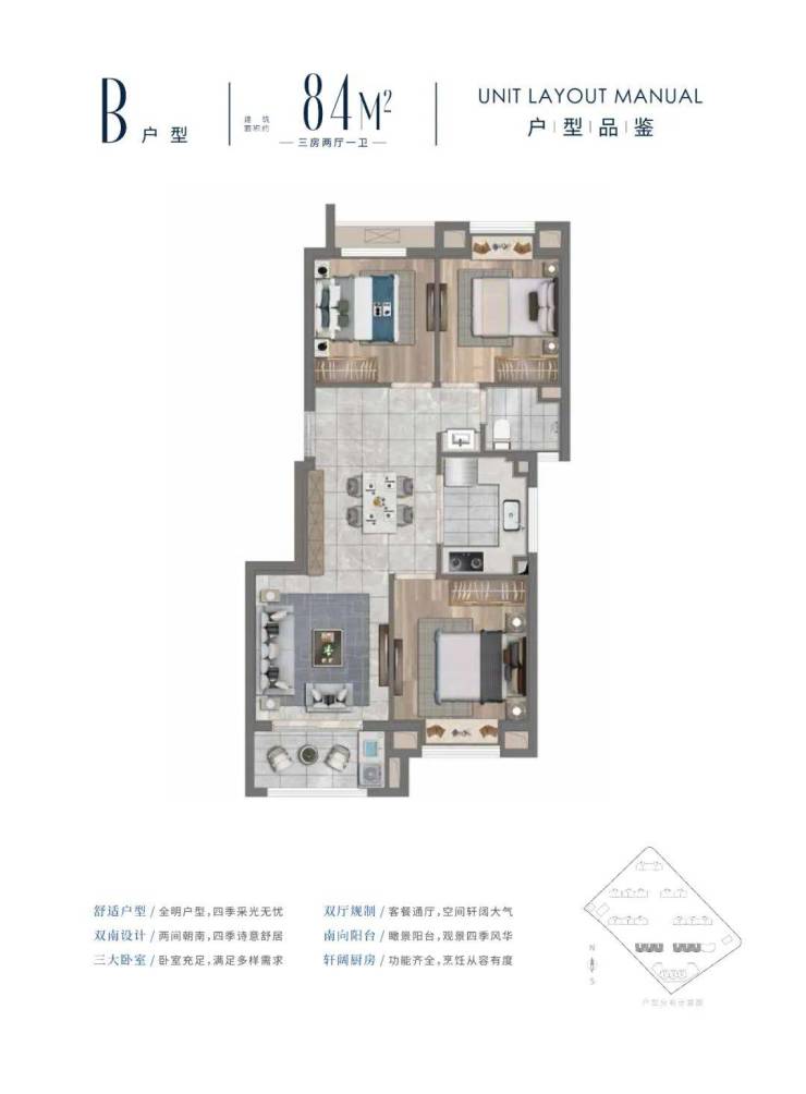 主力户型约:84-100㎡3房