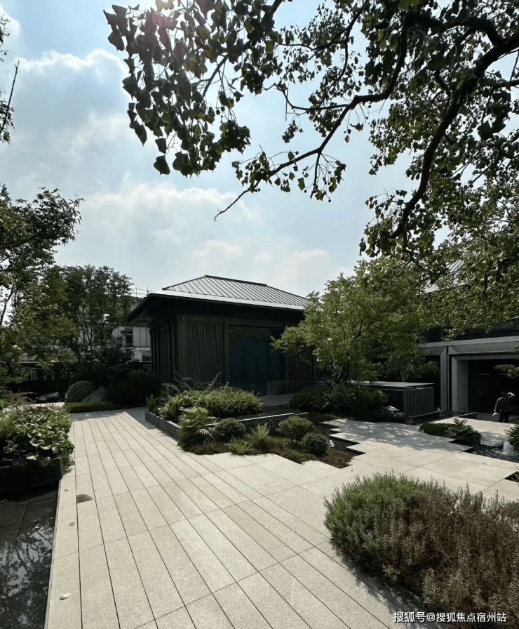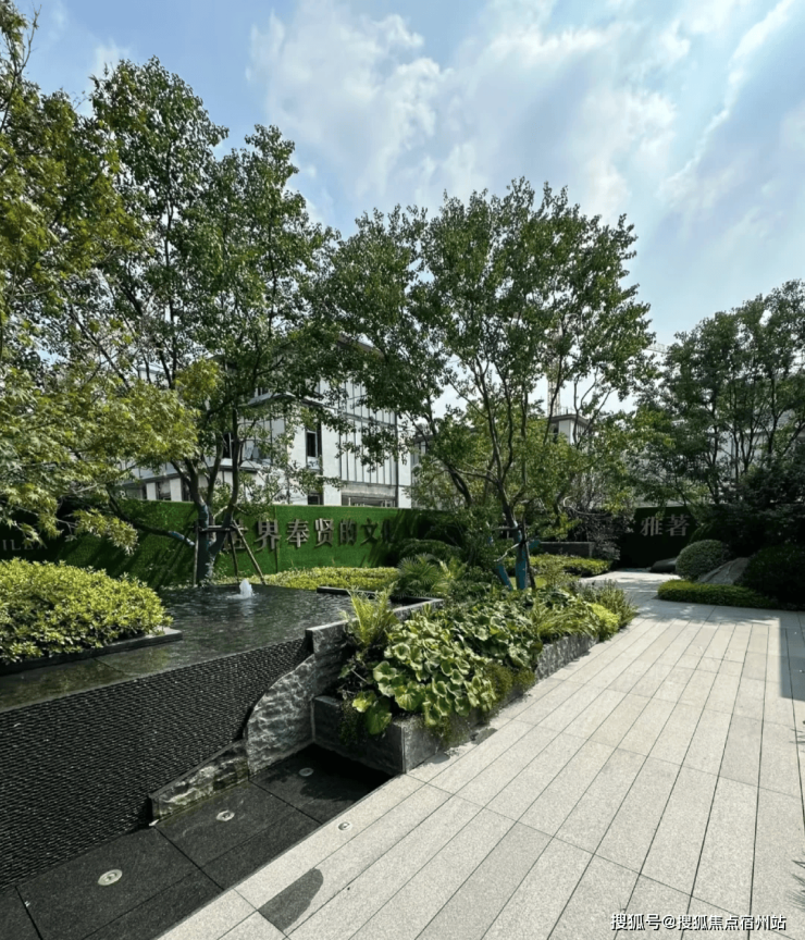 建筑立面:采用 现代江南风格+浅米色石材+深色金属线条,融合传统美学与现代工艺;