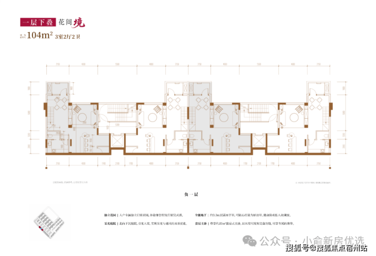 建面约90㎡/120㎡3房2厅2卫(一层下叠):