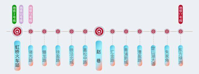除了示范区线(在建),大名城映辰二期更有17号线的加持,从【赵巷站】出发,6站直达虹桥火车站,无缝换乘2号线、10号线,快速通达中山公园、静安寺、陆家嘴、新天地、淮海路商圈等传统市区,出行十分便捷。