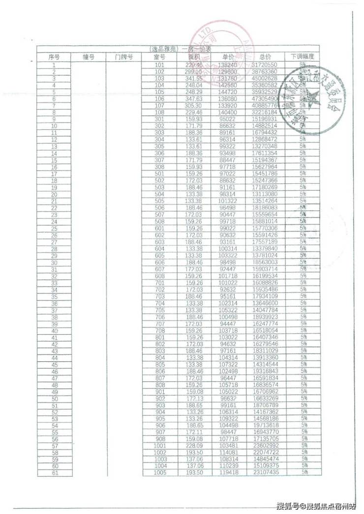 前期一房一价表: