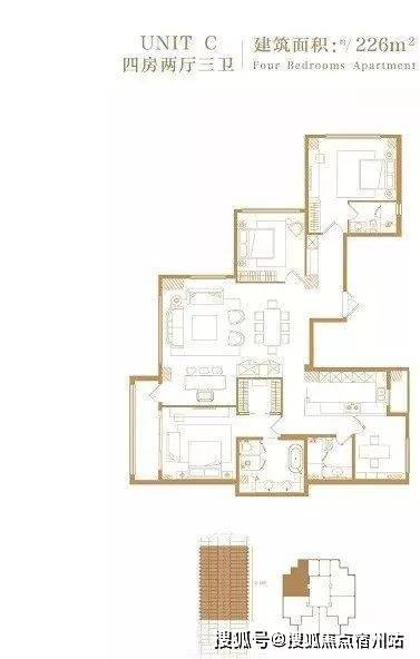 226平米:4房3厅3卫(1梯1户)