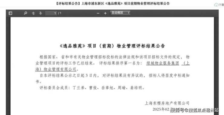 2025年2月绿城物业服务集团(上海)物业管理有限公司中标滨江一品苑前期物业项目,正式成为滨江一品苑物业。