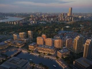 以 “折叠城市” 理念,将黄浦江天然水系引入社区,打造内湾景观 + 浮岛花园 + 空中连廊 + 阳光草坪的立体园林。