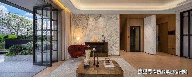 此外架空层还有很多细节,比如整体的挑高整整有5.2m,妥妥的豪宅级别配置;地面拼花都是纯手工拼接,摩登现代,打造出移步异景的归家仪式感。在600万级的项目中,真真实实属于超配!
