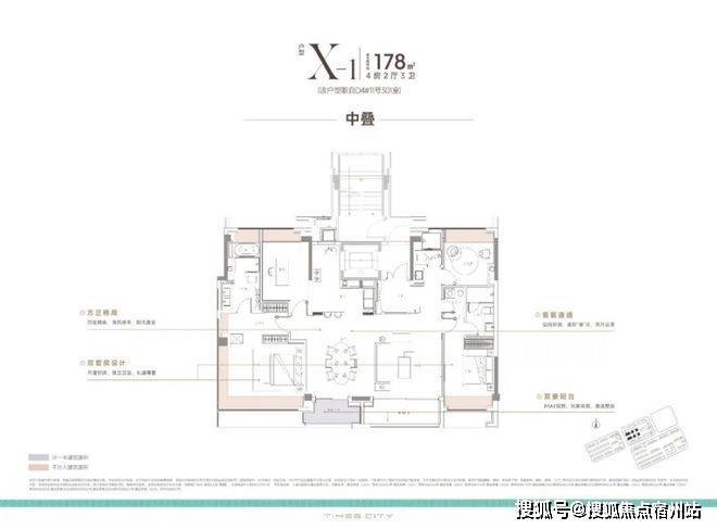 中平户型以四开间朝南的IMAX级采光面,打造出堪比市区豪宅的尺度感。4房4飘窗2阳台的设计,配合双套房布局,一共有三个套房,让每个家庭成员都享有独立私密空间。