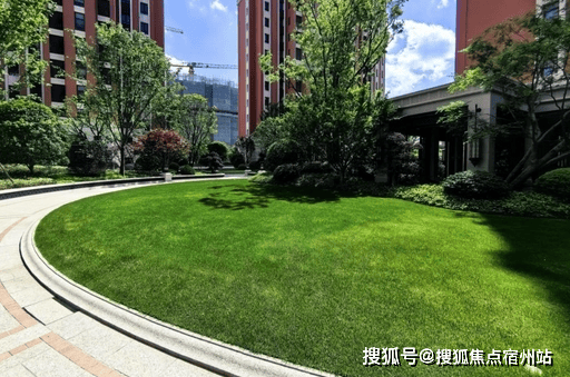 社区内部绿化率高达 35%-38% ,采用 全冠移植 成年香樟、银杏、紫薇等名贵绿植,打造 “ 两轴三庭五院 ” 立体园林,搭配下沉式庭院、锦鲤池、罗汉松造景,实现 “四季常绿、步步有景”,推窗即揽绿意,鲜氧时刻环绕。