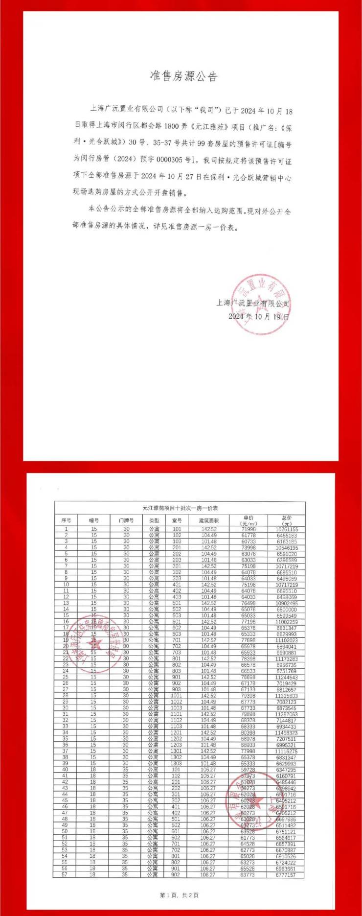 最新一房一价表: