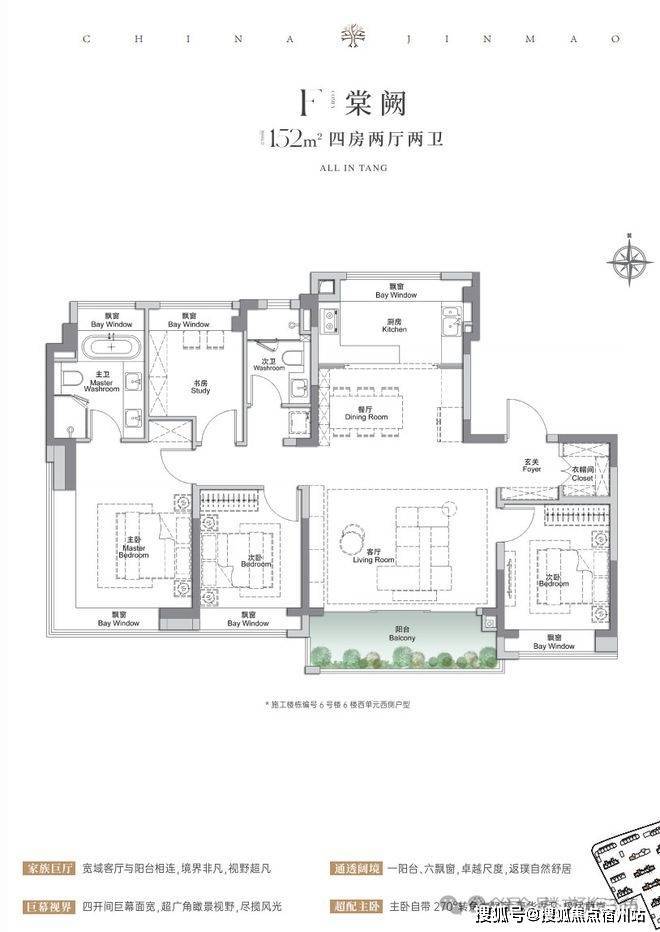 主卧带270°转角飘窗+卫生间,拥有寰宇级瞰景视野,让业主有更好的私密性和生活舒适度。✅✅金茂棠前开发商售楼部热线:400-833-6309(开发商直连,解答项目规划、购房政策等)