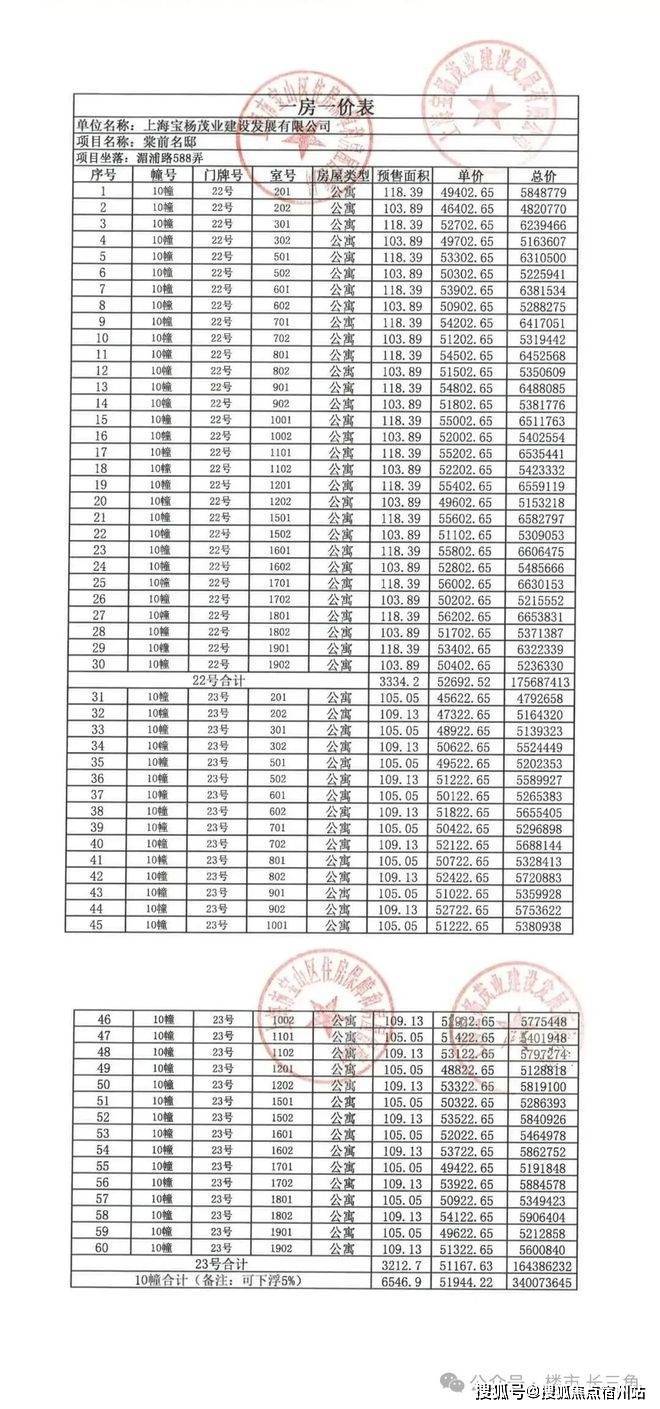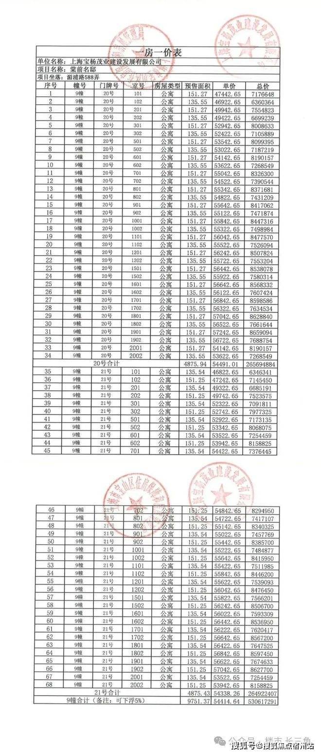 最新一房一价表: