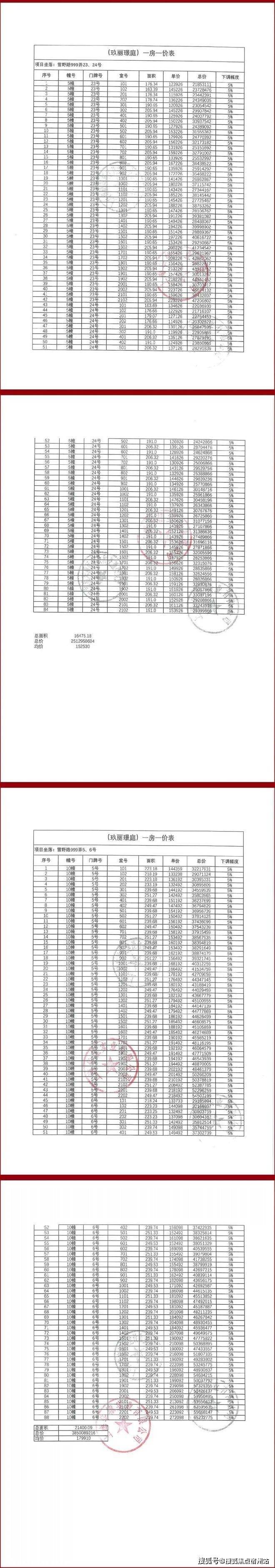 五批次最新一房一价表: