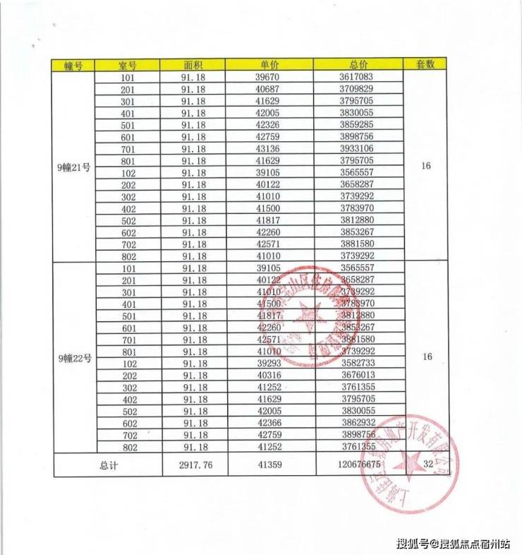 上期一房一价表: