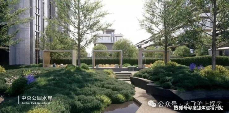 在社区内部,则通过一条自然水轴,串联六大景观节点,从约35米宽的酒店级社区大门,到内部水院以及不同主题的景观花园,步步皆景。