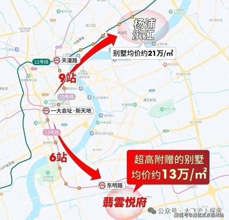 更别说浦西了,距离新天地9站的杨浦滨江别墅新房均价约21万/㎡。